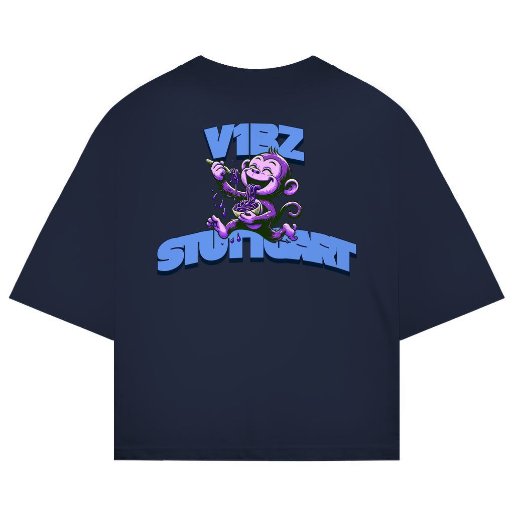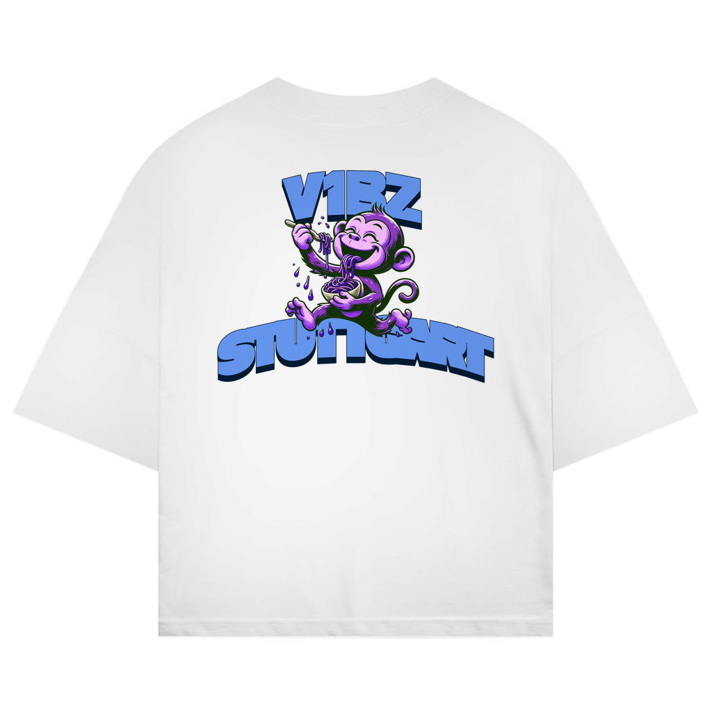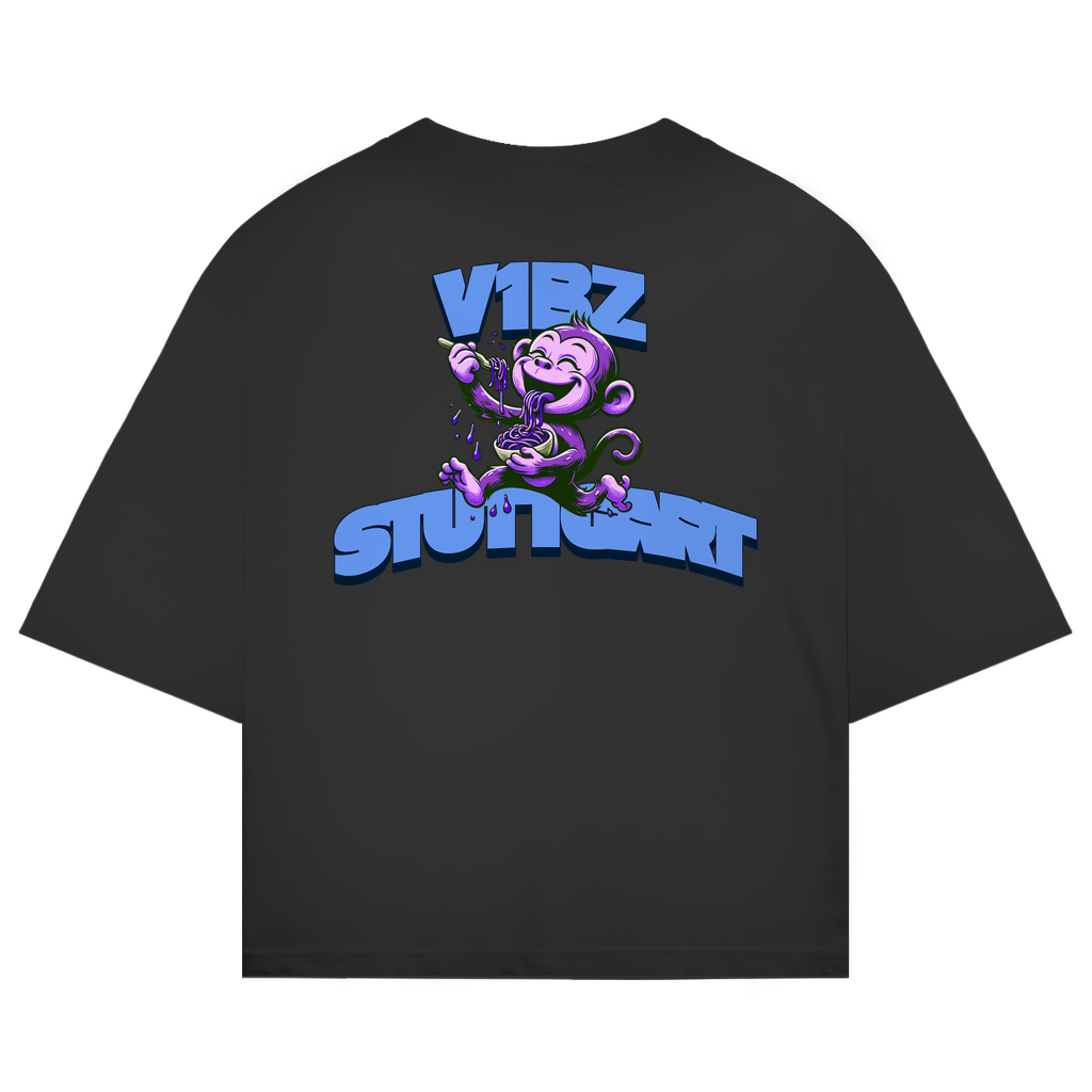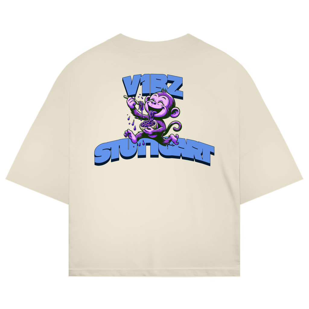 Heavyweight oversized T-shirt with a boxy fit made from 100% organic cotton. Front kept clean, back with exclusive v1bz design. Printed in Germany.