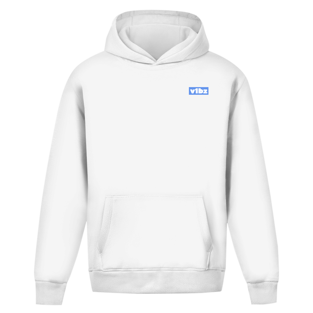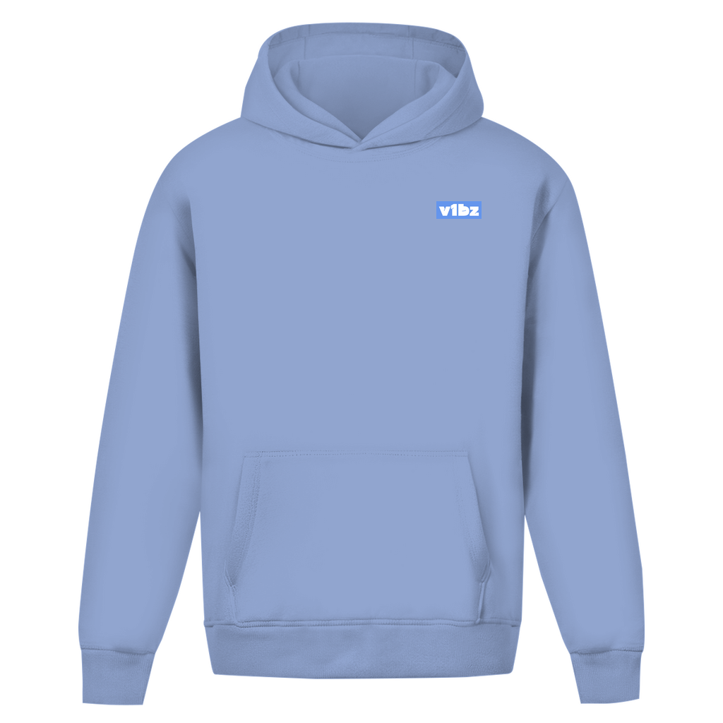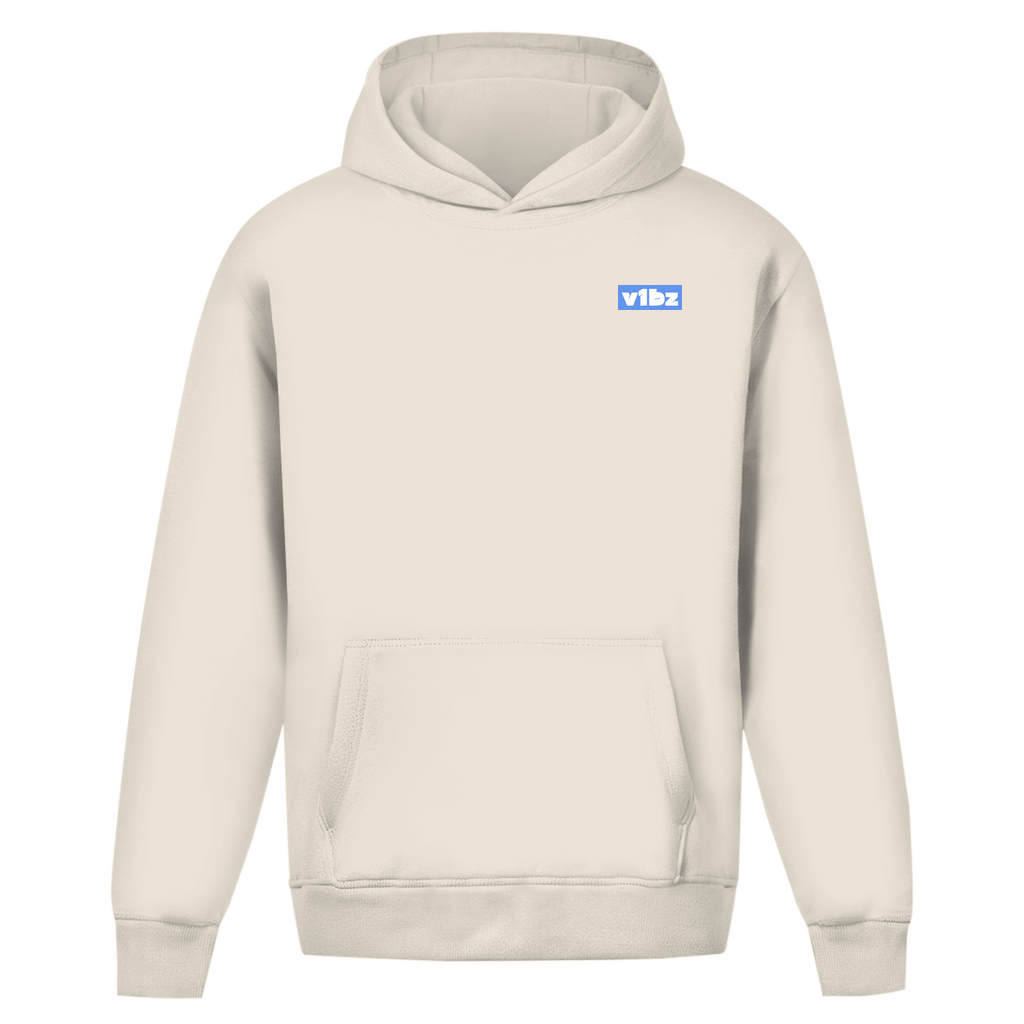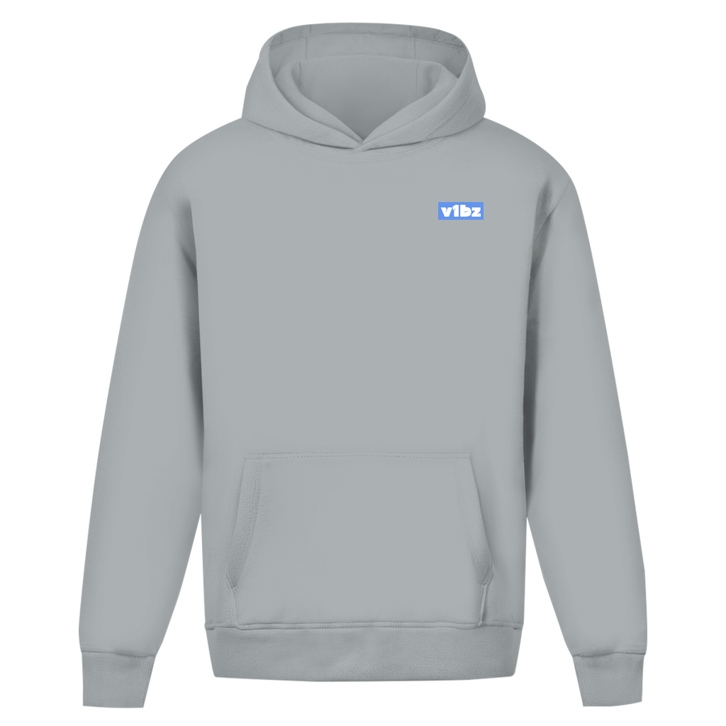Heavyweight oversized hoodie with a boxy fit. Front box logo with v1bz branding, back with exclusive design. Printed in Germany.